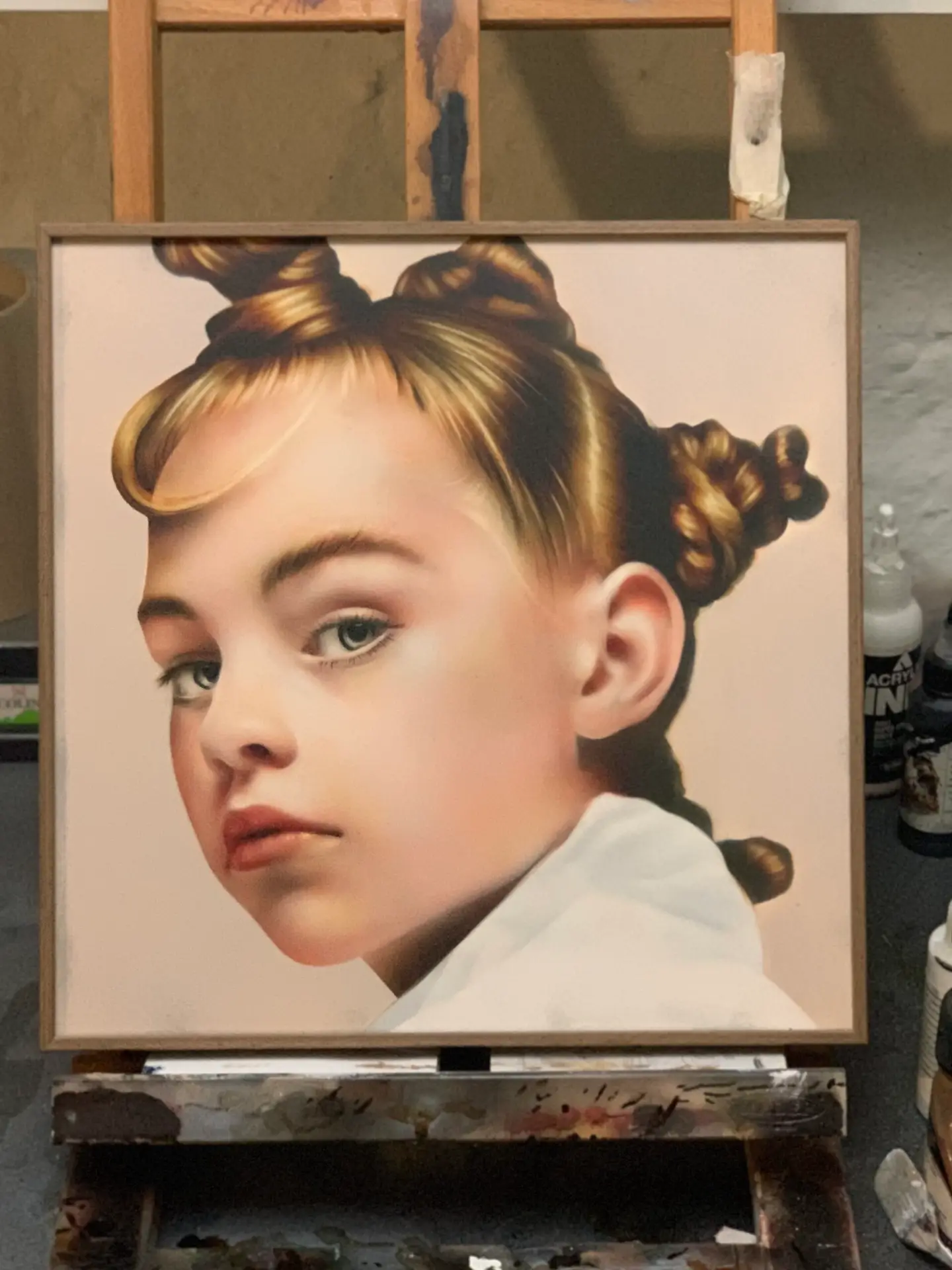 Mine værker bliver oftest udført i oliemaling, men jeg arbejder også med airbrush og akryl, alt efter det ønskede udtryk.